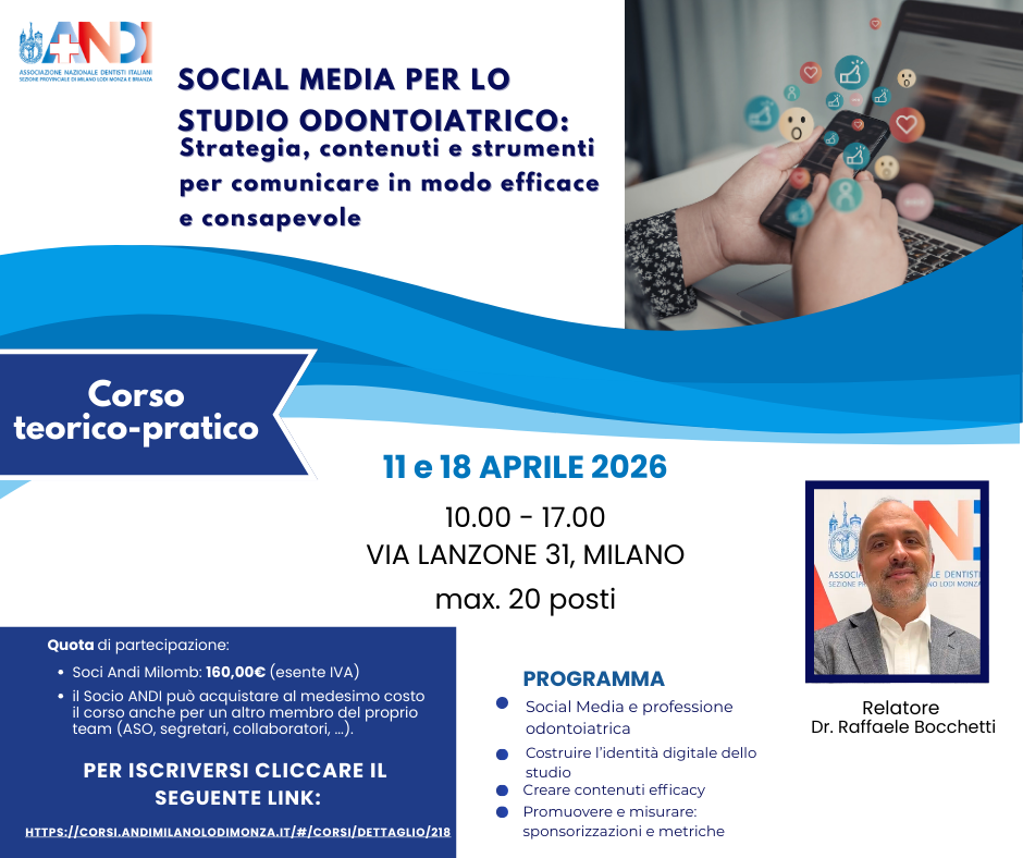 ANDI Milano Via Lanzone, 31, Milano, MI, Italia“Social Media per lo Studio Dentistico: strategia, contenuti e strumenti per comunicare in modo efficace [...]