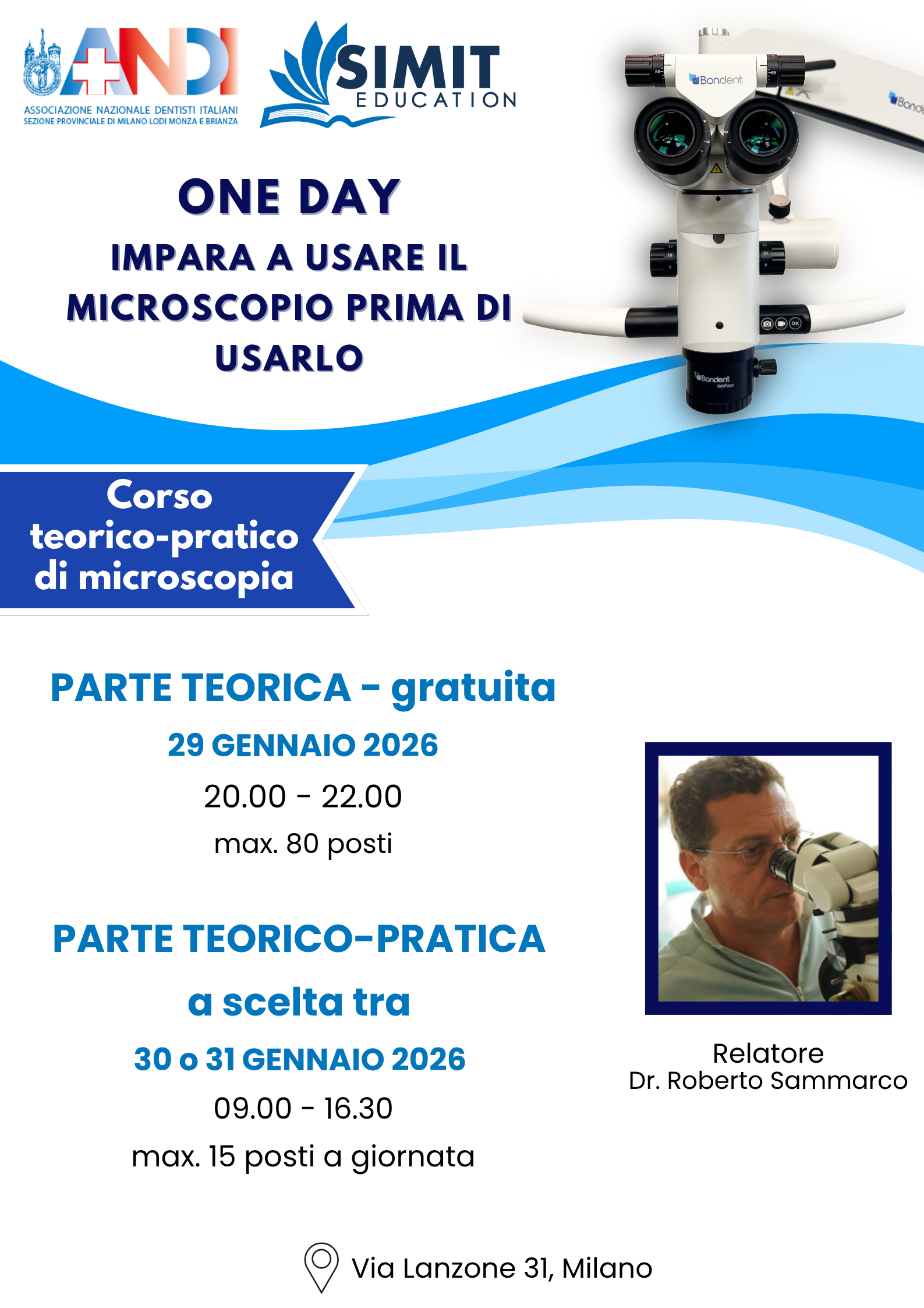 ANDI Milano Via Lanzone, 31, Milano, MI, ItaliaParte solo teorica del corso teorico-pratico "ONE DAY: impara a usare il microscopio prima [...]